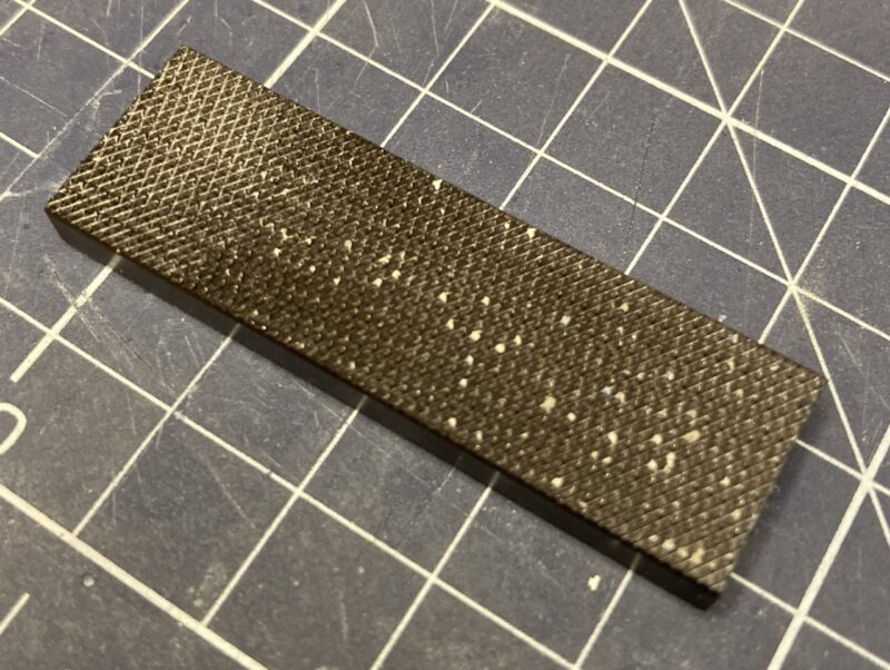 この「けずる刃」の最大の特徴は、どの方向に動かしても削れる特殊な目打ちがされている点です。一般的なヤスリのように方向を意識する必要がなく、まるで指先の延長のように感覚的にパーツを削り出せます。